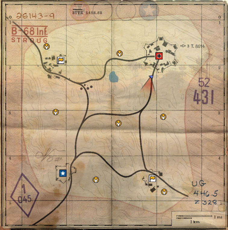 После установки игры, на Вашем рабочем столе появятся 2 ярлыка, которые и ведут в две раздельные части игры: Поля славы и Дюны в огне. В каждой из них свои карты, согласно описанывыемым в частях событиям. Ниже в таблице они (карты будут перечислены) с приведением небольших исторических справок, а также с возможностью более подробного рассмотрения до мельчайших деталях