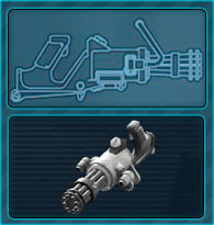Описание: Усовершенствованный миниган с облегчённым стволом позволил гораздо быстрее передвигаться. Но есть и минусы: ствол нужно каждый раз раскручивать (а это лишняя секунда), имеет меньше обойм, чем простой миниган.