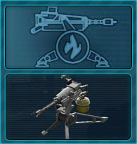 Описание: грубо говоря, это переносная турель, описанная выше. Очень мощная и очень медленная. Для больших противников подходит отлично, но тратить за зря на всё прочее её не стоит, боезапас крайне мал.