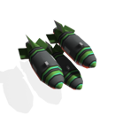 Кластер из трёх бомб, которые Вы можете нести вместо того, чтобы транспортировать боевую единицу. Сбросьте три бомбы сразу для того, чтобы расчистить хорошо укреплённые области.
